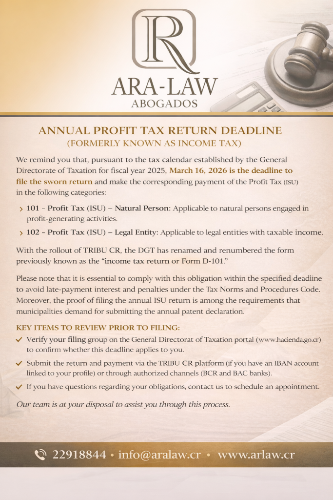 We kindly remind you that the deadline to file and pay the Profit Tax (ISU), formerly known as Income Tax, is March 16, 2026.